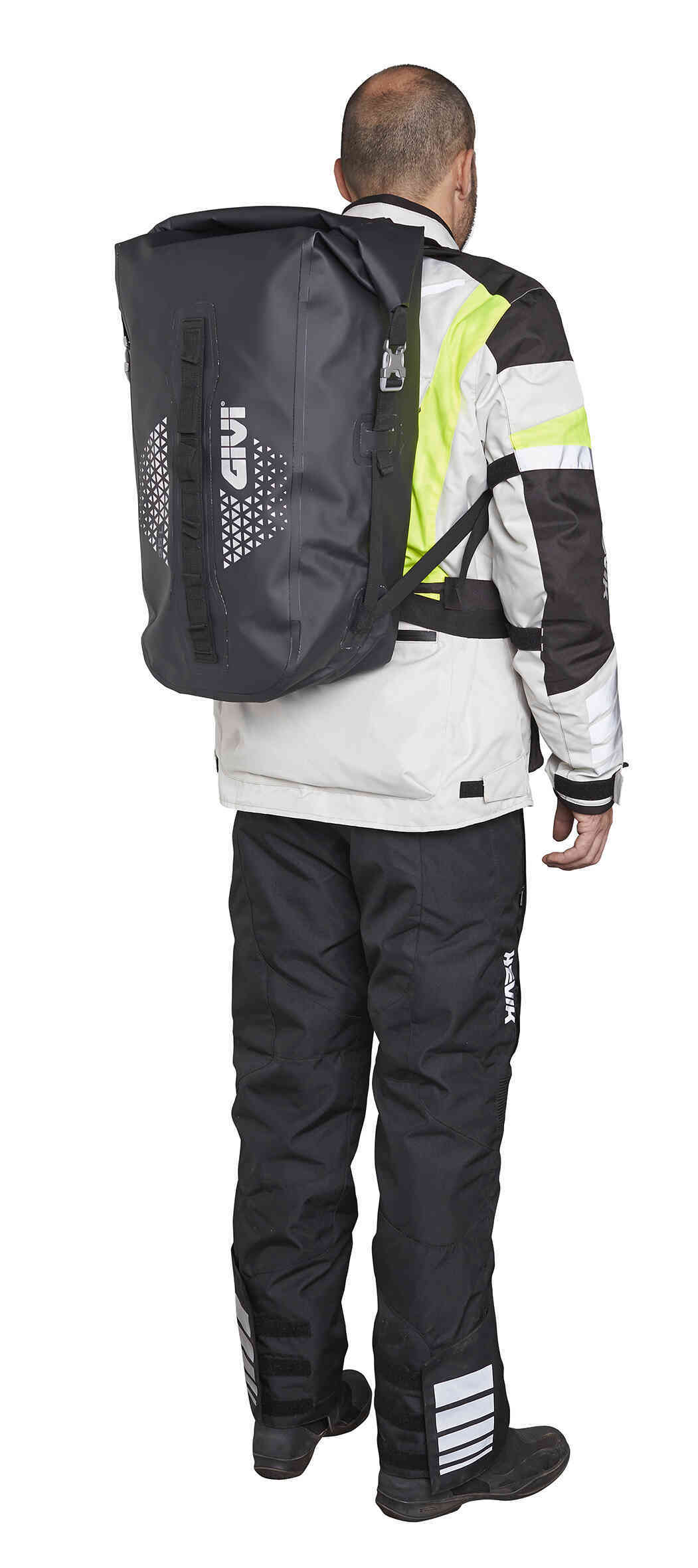 The Givi UT802 35 liter Waterproof backpack is great for the rider on the go. A more compact design versus its 40-liters counterpart, what it sacrifices in space it makes up for in mobility and features. Includes waterproofing up to "temporary Immersion" and extreme conditions, high visibility reflective designs, adjustable shoulder straps with ergonomic padding, and an air vent valve system.